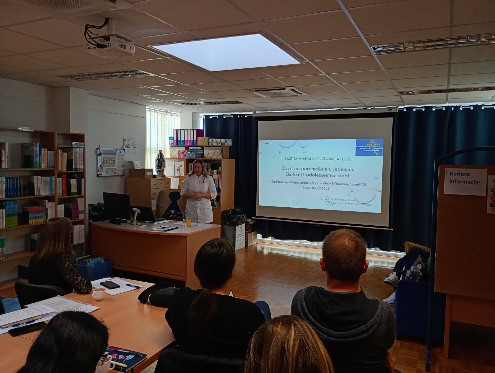 Doktorica Andreja Kos Milkić, specijalistica školske medicine, održala je predavanje u Osnovnoj školi Molve naslova „Zaštita mentalnog zdravlja djece i adolescenata - osvrt na poremećaje jedenja“. Predavanje je bilo namijenjeno nastavnicima i stručnim suradnicima škole.
